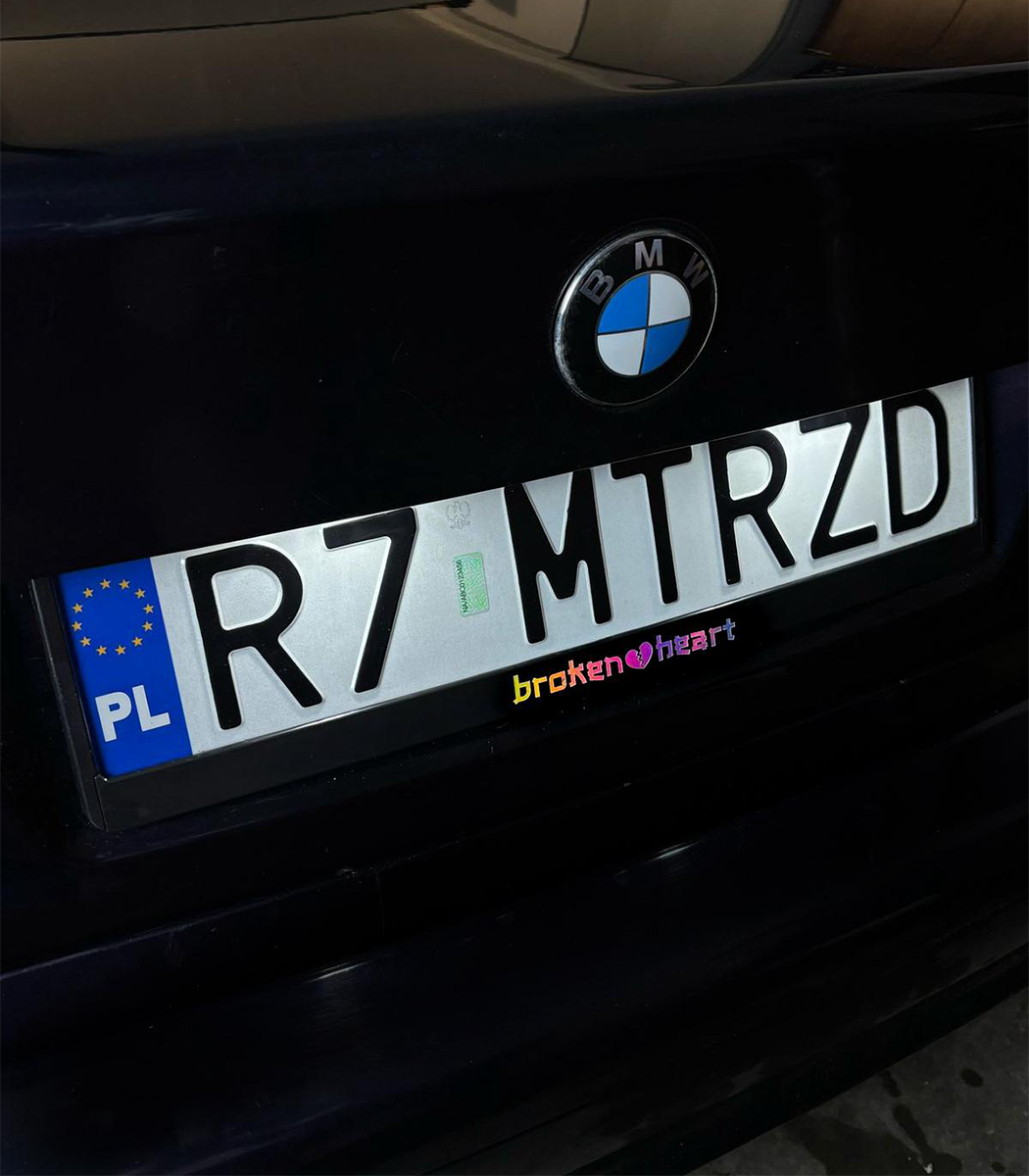 ➡️ RAMKA TABLICY REJESTRACYJNEJ Z NADRUKIEM BROKEN HEART