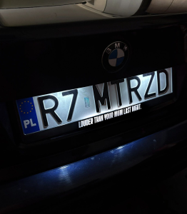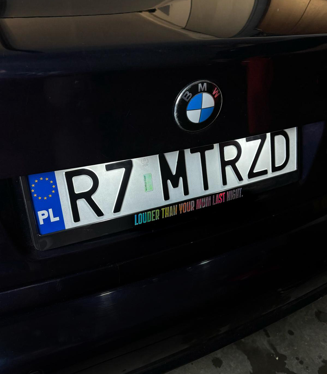 ➡️ RAMKA TABLICY REJESTRACYJNEJ Z NADRUKIEM LOUDER THAN YOUR MOM LAST NIGHT
